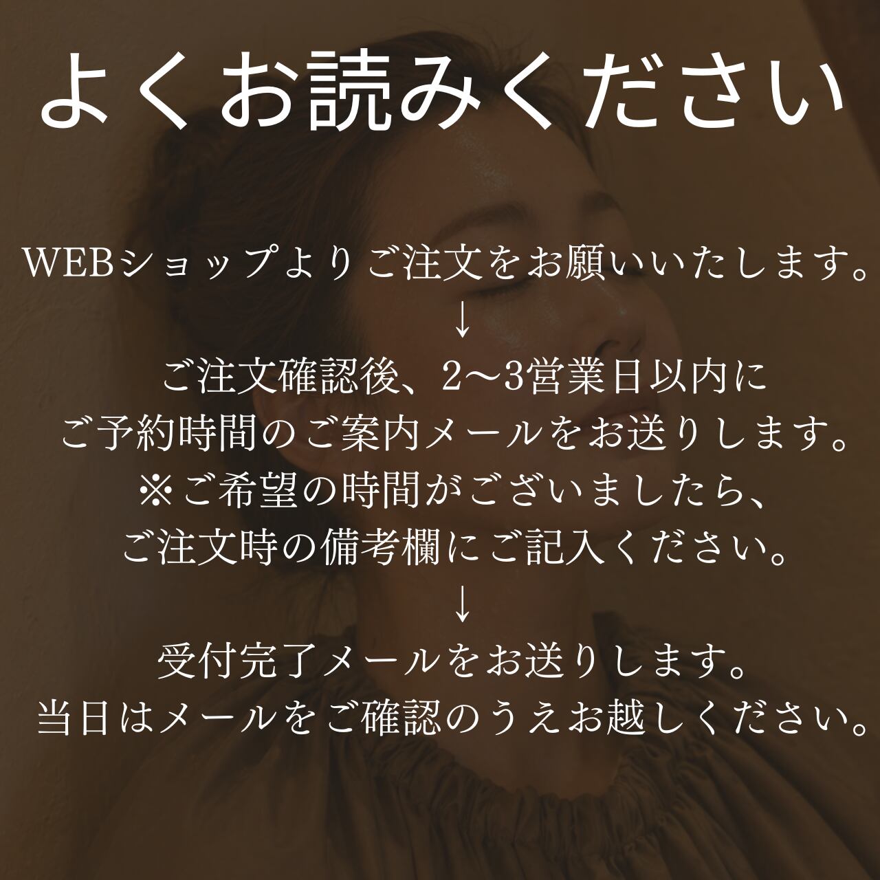 ご予約時間のご案内メールをお送りします。